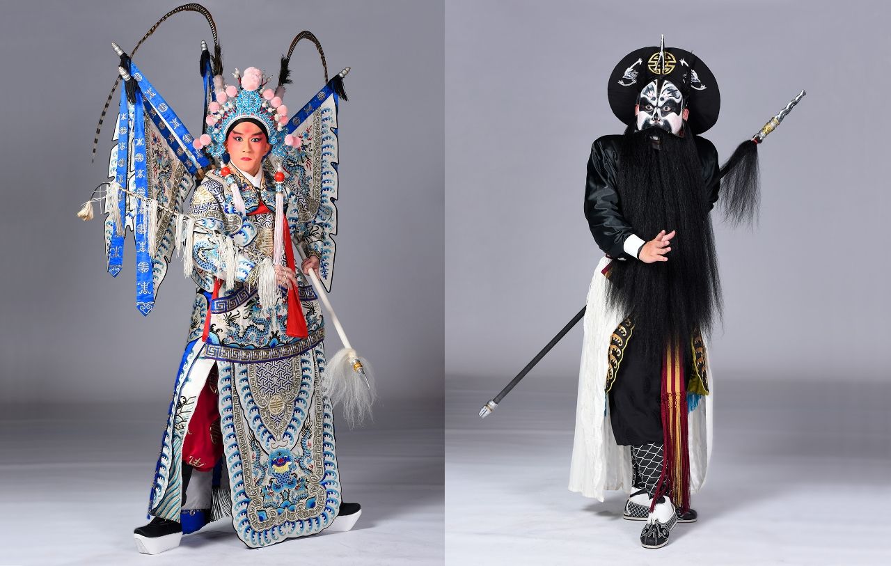 A:不是喔,那個雉雞翎上戰場時不用的,那兩撮鬚鬚是武生裝扮。