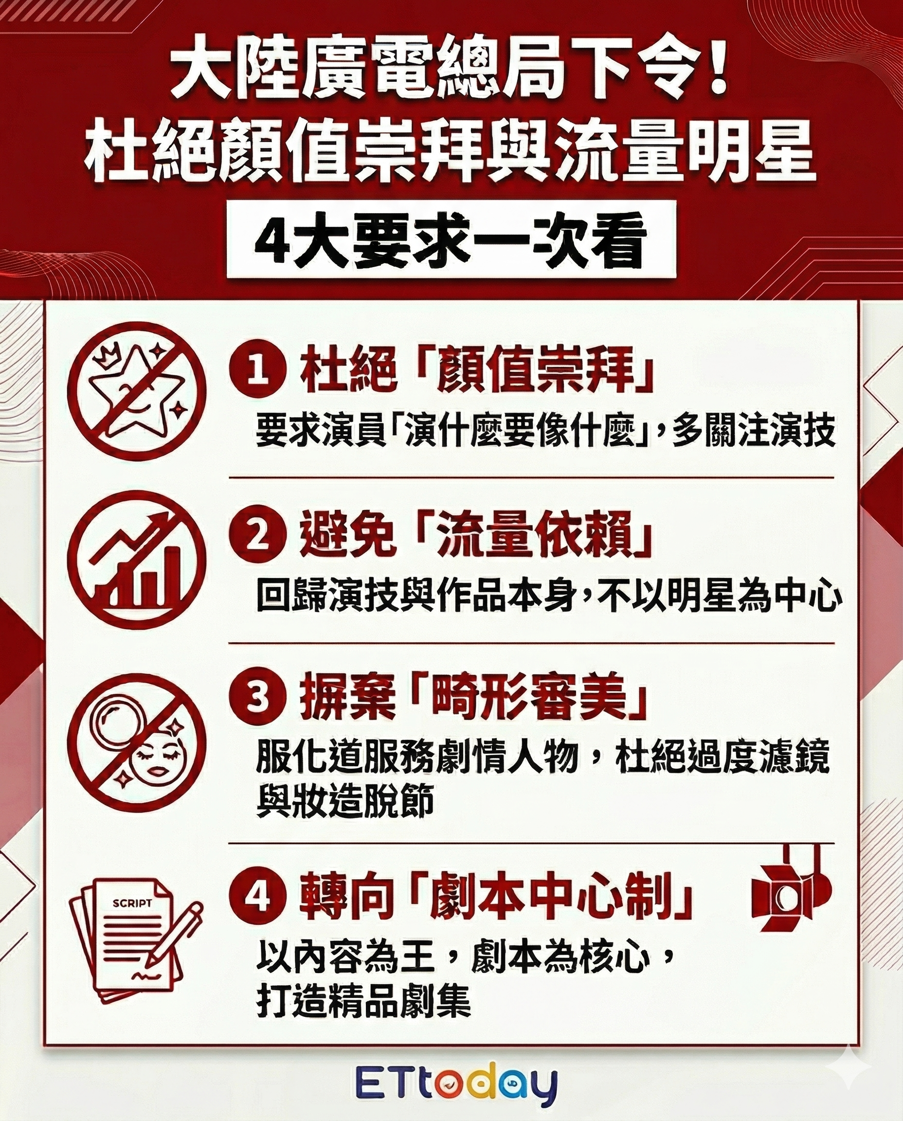 崇拜」,並下令必須堅守創作底線,強勢推動行業從「明星中心制」轉向「劇本中心制」