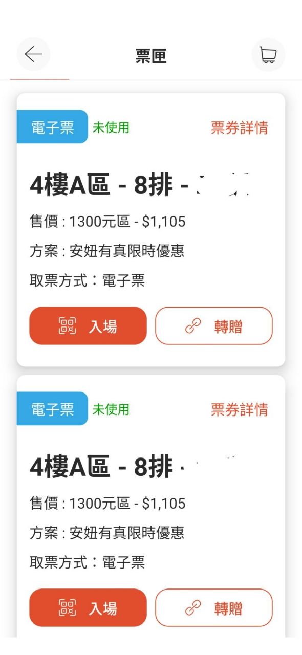 位置:兩個位子 4樓A區8排 2x號
