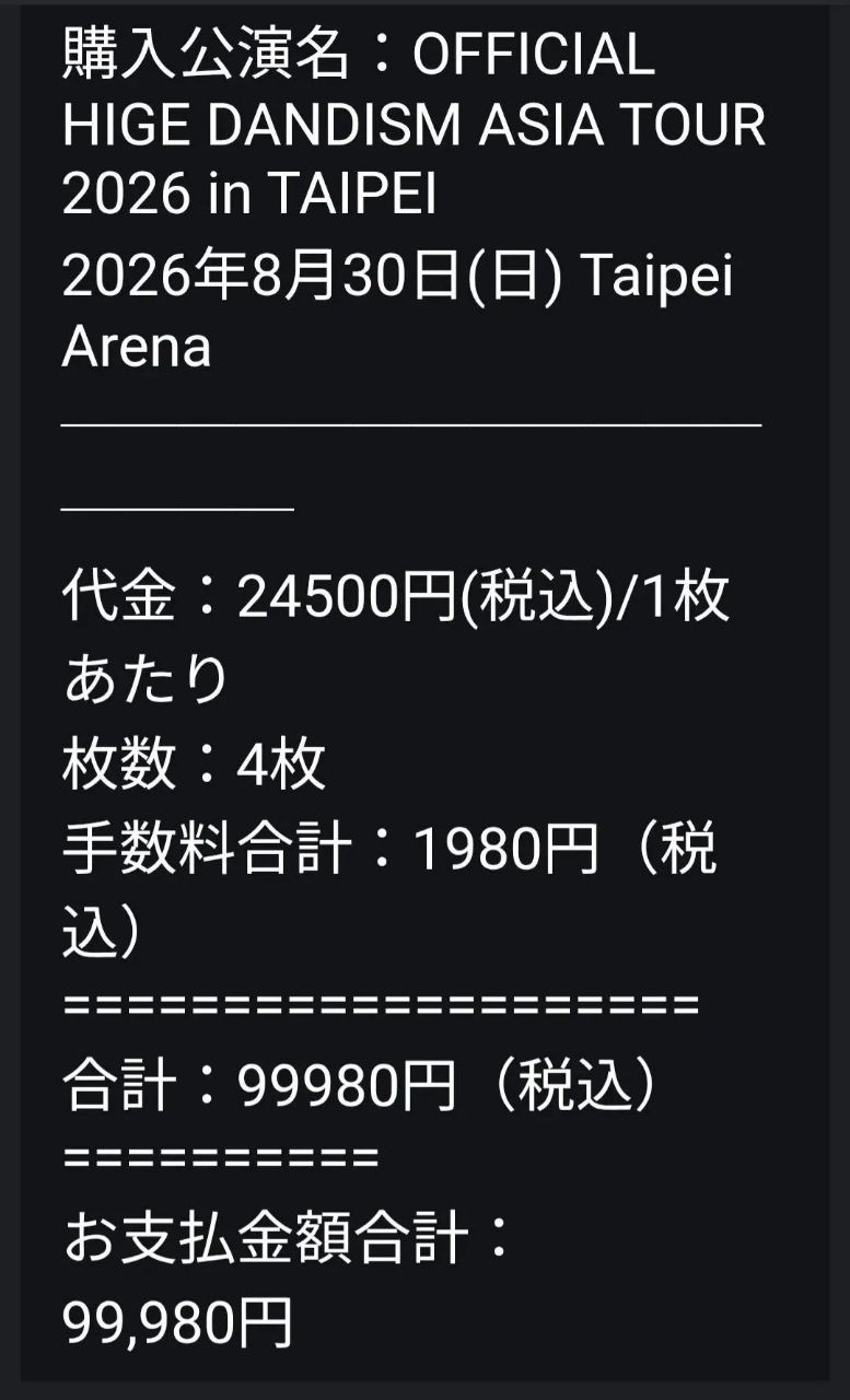[售票] 8/30鬍男 日本國內W會員CAT1一張