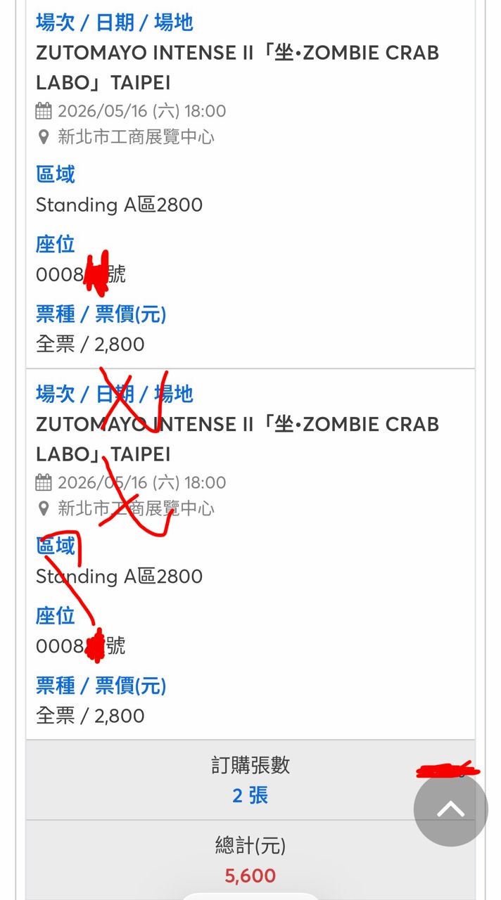 [售票] 降ZUTOMAYO 5/16 STANDING A *2