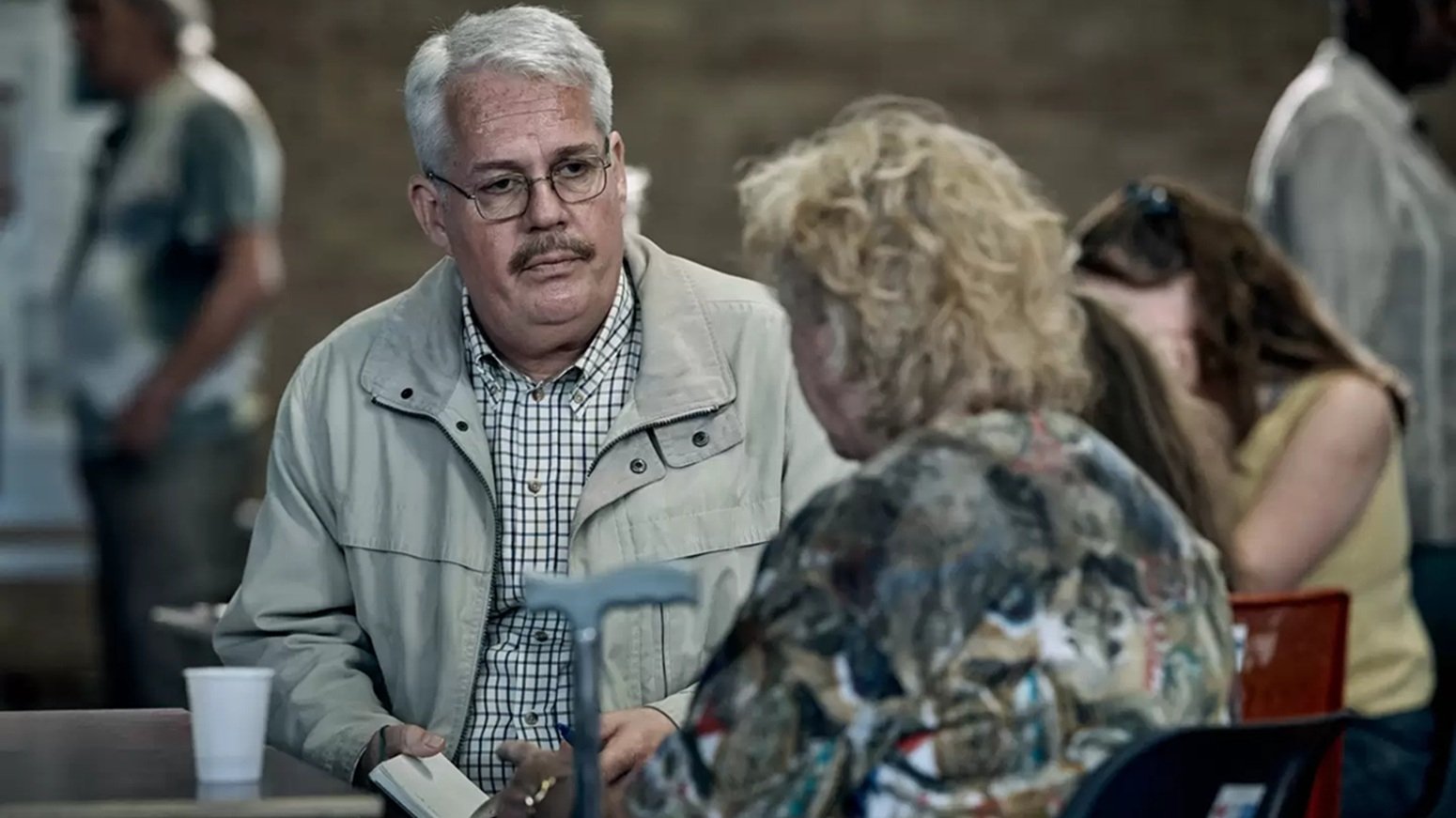 (2) 海報右上方灰頭土臉的當地警察 Paul 事發當天在現場執勤,本劇的調查與究責戲份是歸不到他,但透過他眼睛見證爆炸現場芸芸眾生與各類創傷:對他們第一線見證者來說除了本來以為小事一樁突然變成世界末日完全無法接受外,更淒慘的是人人都有「親愛之人」本應不離不棄卻從此「天人永隔」!除了他外還有人剛好這時離家進城逃過一劫卻死了妻小、有大學生這時結伴出遊沒跟去的就送了小命、亦有依戀女兒的母親第一次放女兒獨立女兒就身死... 他們戲份在 E01兀自承平輕飄 E02竟已哭天喊地,更慘的是到 E04「一年後」還有更多創傷將沉潛逆襲!