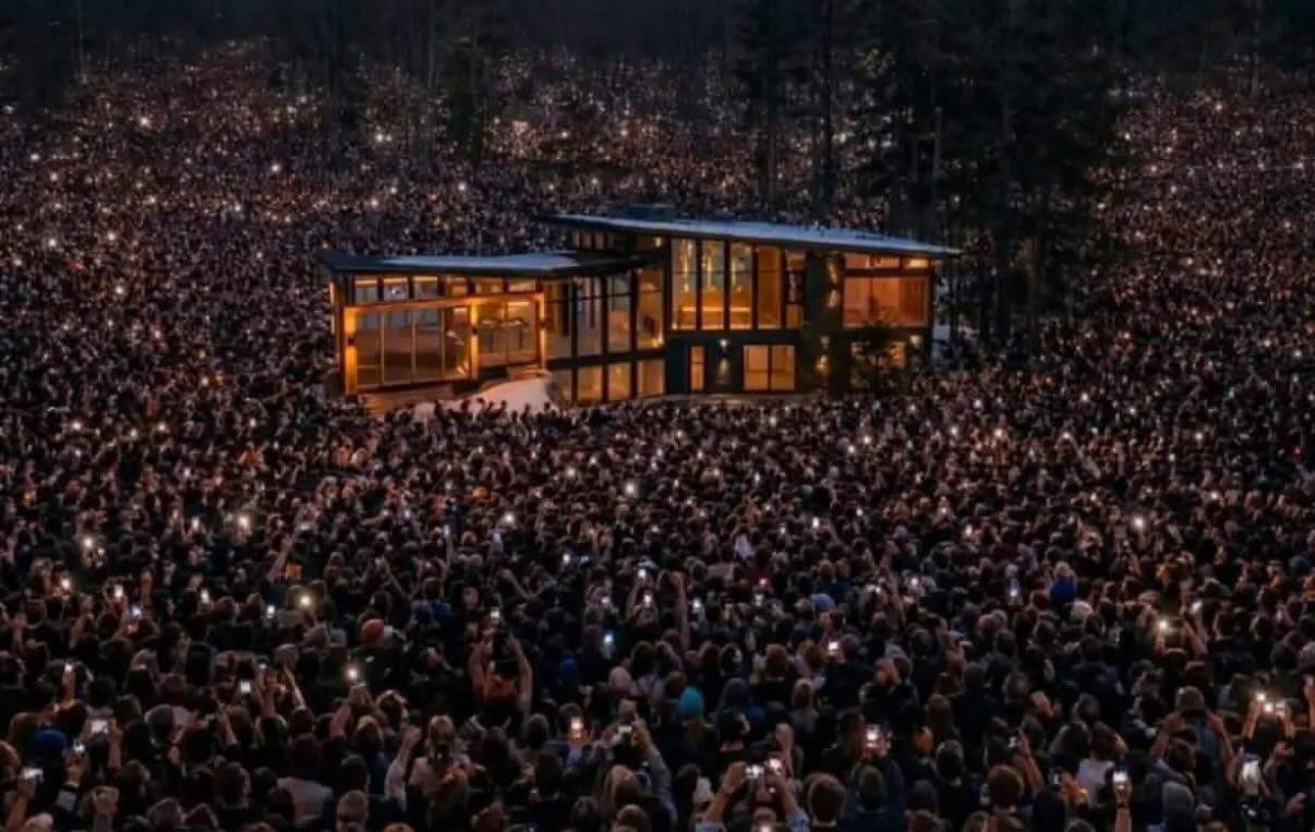 (小屋外的人潮)
