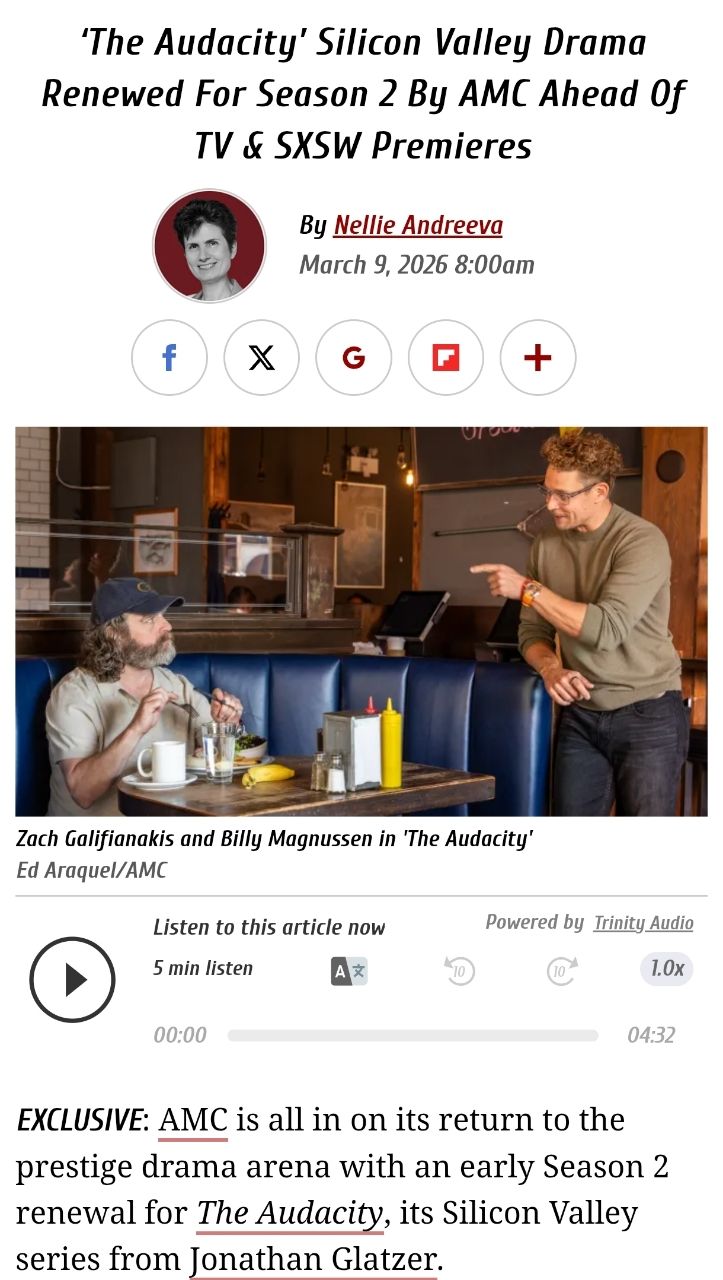 )及上架(AMC+)的新劇The Audacity(膽大妄為,暫譯)確定超前獲得第二季續約。
