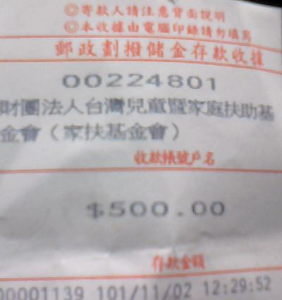 : 我本人會捐一千元給家扶基金會出來
