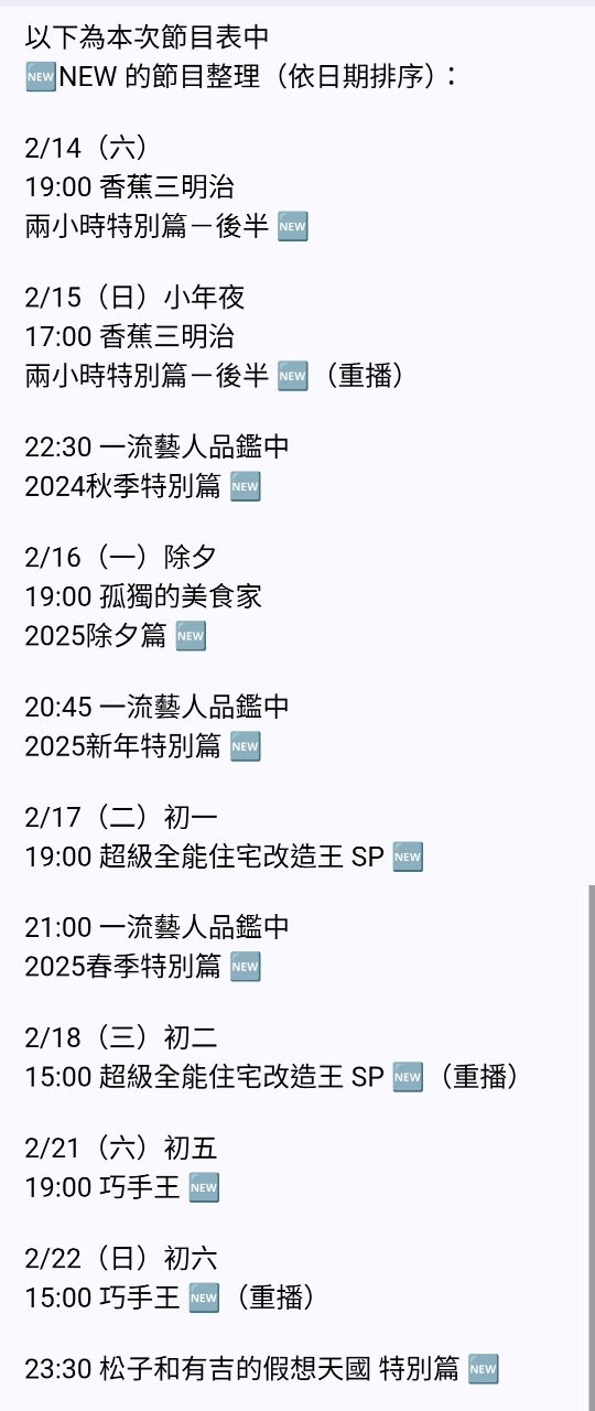 [情報] 國興 2026過年連假特別節目