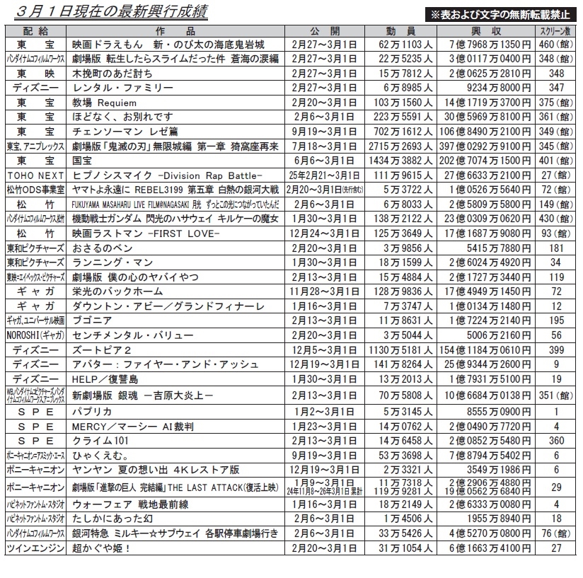 ║3║—║劇場版 転生したらスライムだった件 蒼海の涙編║1║ 3.0億║ 3.0億║