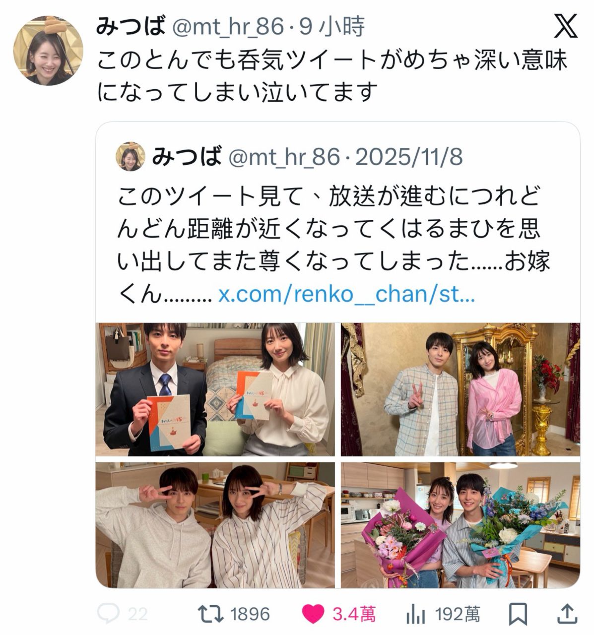 「這條原本輕鬆隨意的推文,如今卻蘊含瞭如此深刻的意義,讓我感動得流淚。」