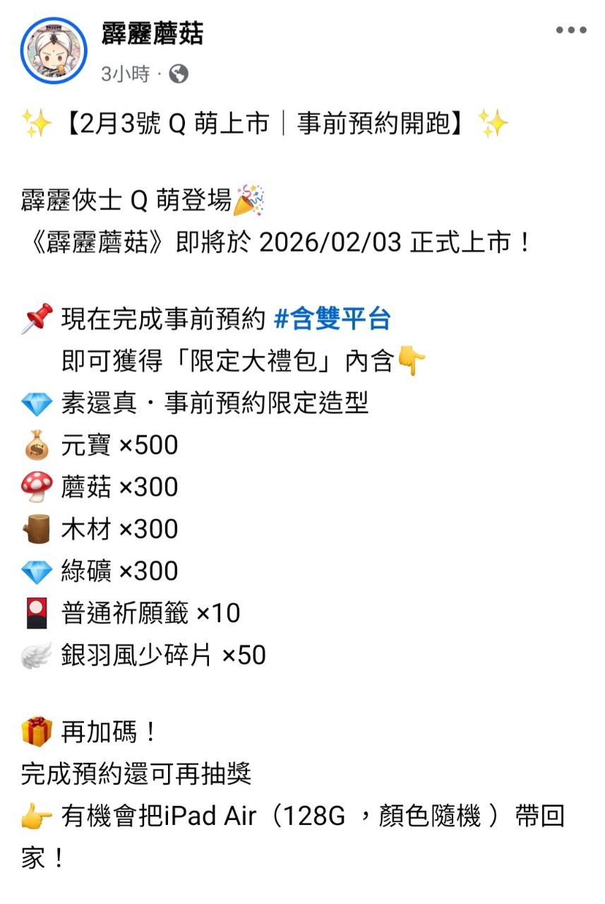 #霹靂蘑菇 #2月3號 #Q萌上市 #雙平台