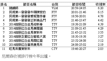 [情報] 過年特別節目收視 1/27~2/2
