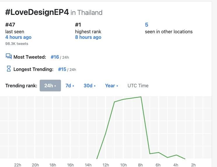 這集播出後在X平台的泰國流行趨勢(聲量)排行榜最高是第1名