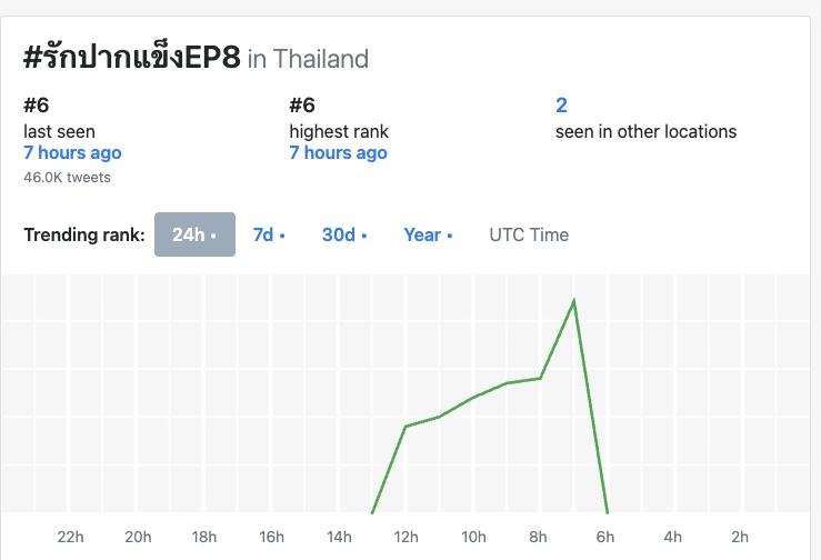 這集播出後在X平台的泰國流行趨勢(聲量)排行榜最高是第8名
