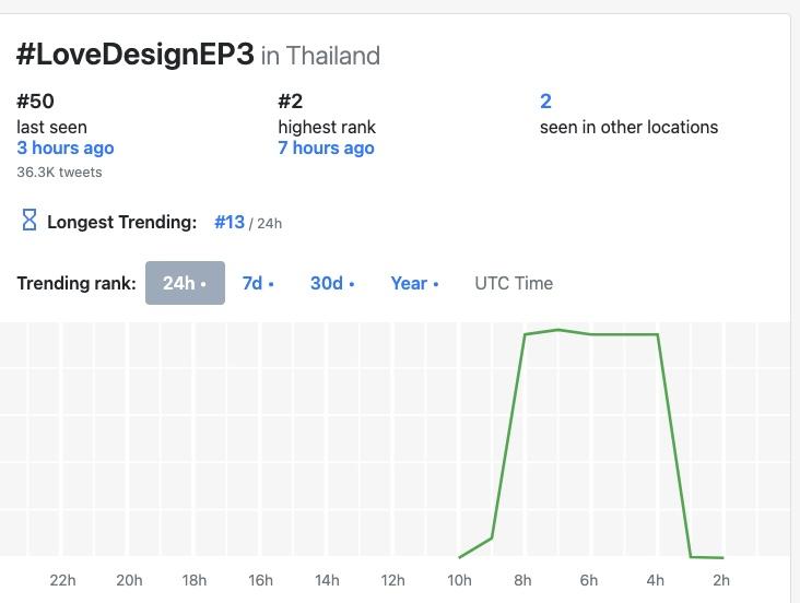 這集播出後在X平台的泰國流行趨勢(聲量)排行榜最高是第2名