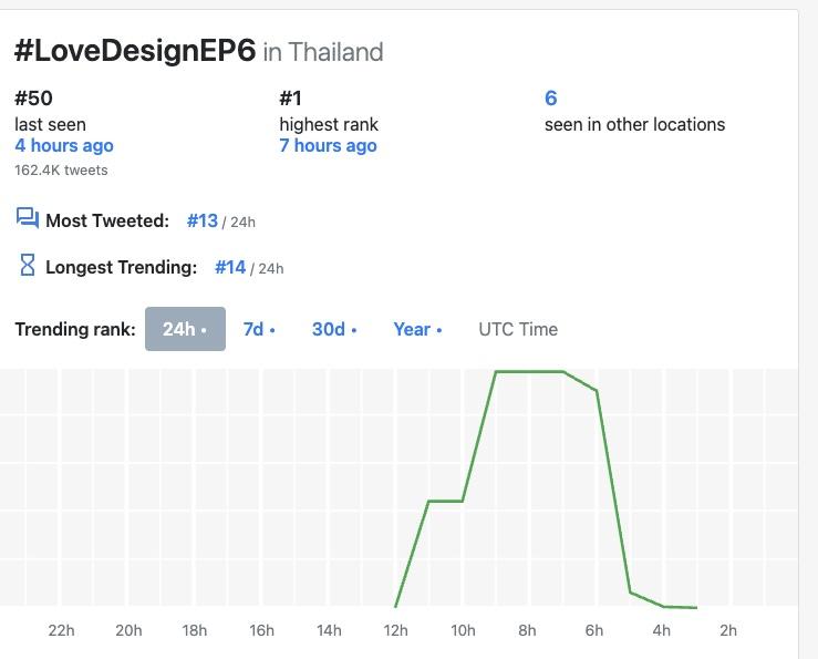 這集播出後在X平台的泰國流行趨勢(聲量)排行榜最高是第1名