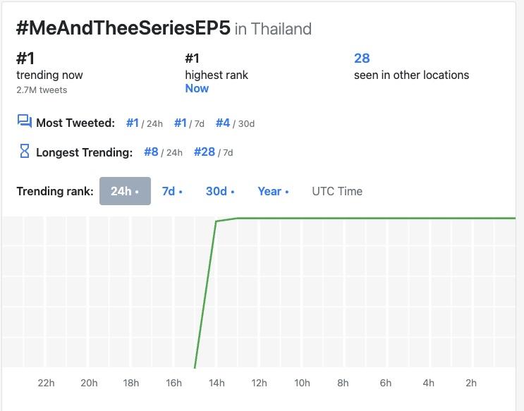 這集播出後在X平台的泰國流行趨勢(聲量)排行榜最高是第1名