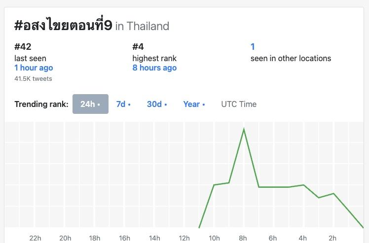 這集播出後在X平台的泰國流行趨勢(聲量)排行榜最高是第4名