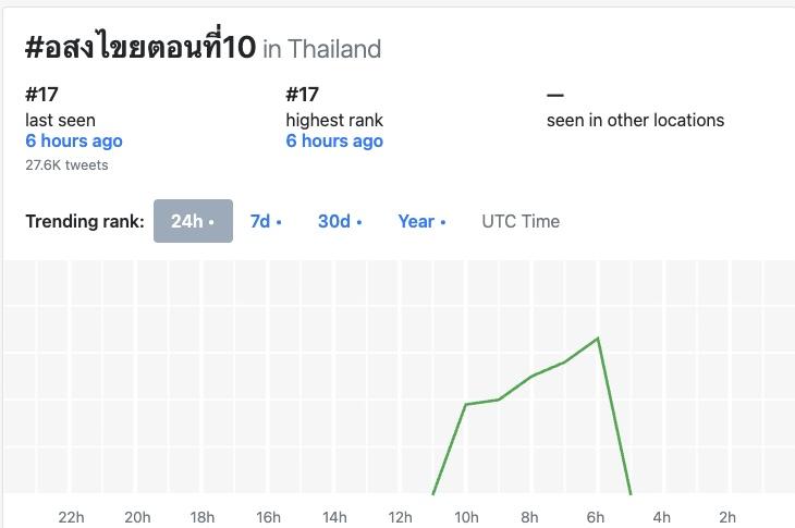 這集播出後在X平台的泰國流行趨勢(聲量)排行榜最高是第17名