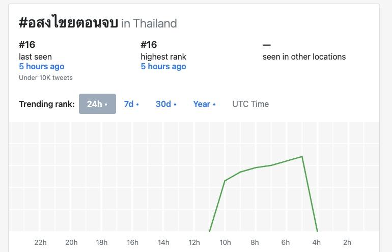 3.這集播出後在X平台的泰國流行趨勢(聲量)排行榜中場最高是第16名