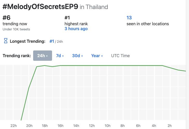 這集播出後在X平台的泰國流行趨勢(聲量)排行榜中場最高是第1名