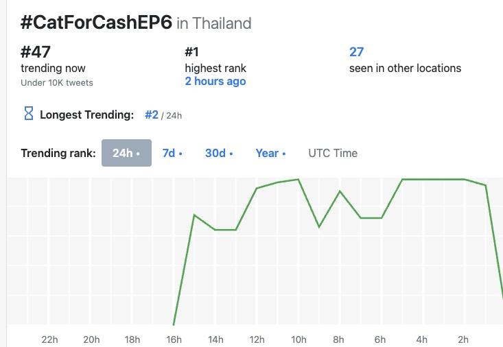 這集播出後在X平台的泰國流行趨勢(聲量)排行榜中場最高是第1名