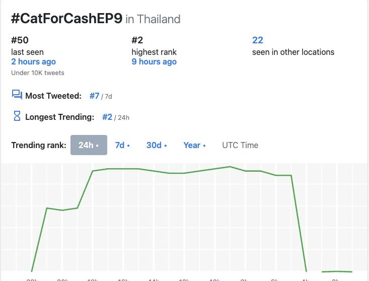這集播出後在X平台的泰國流行趨勢(聲量)排行榜中場最高是第2名