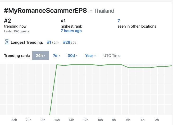 這集播出後在X平台的泰國流行趨勢(聲量)排行榜中場最高是第1名