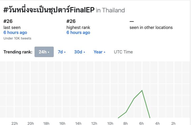 3.這集播出後在X平台的泰國流行趨勢(聲量)排行榜中場最高是第26名