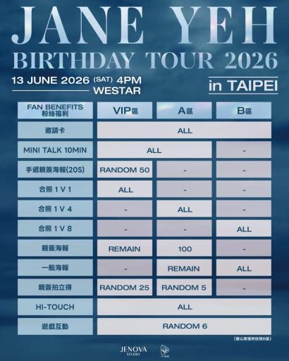 [情報] Jane Yeh Birthday Tour 2026 in Taipei