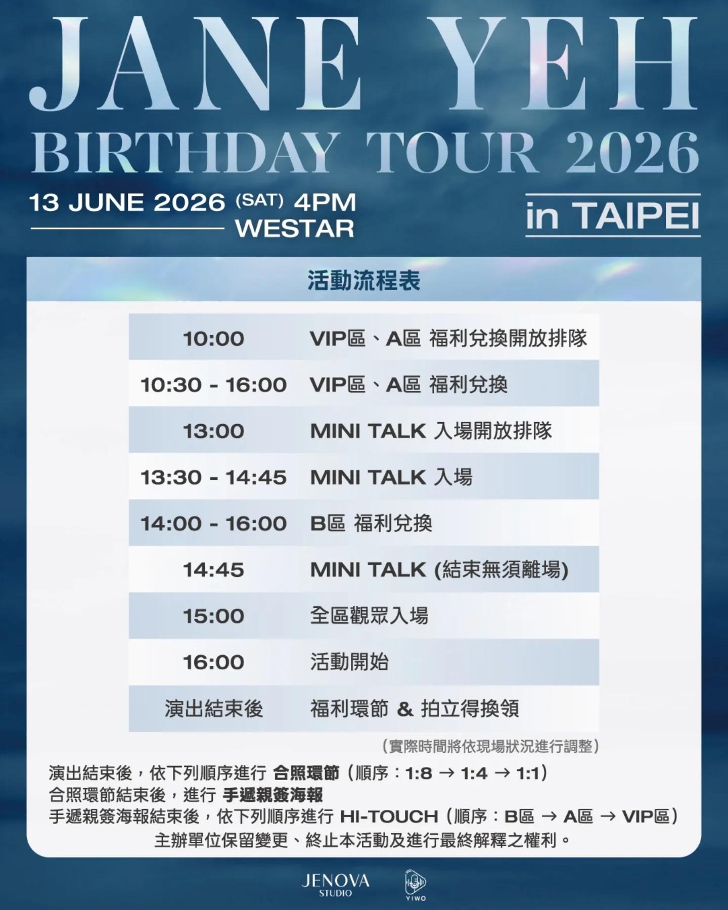 《Jane Yeh Birthday Tour 2026 in Taipei 》