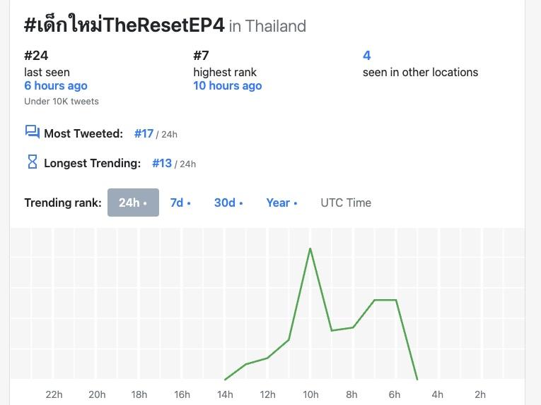 這集播出後在X平台的泰國流行趨勢(聲量)排行榜中場最高是第7名