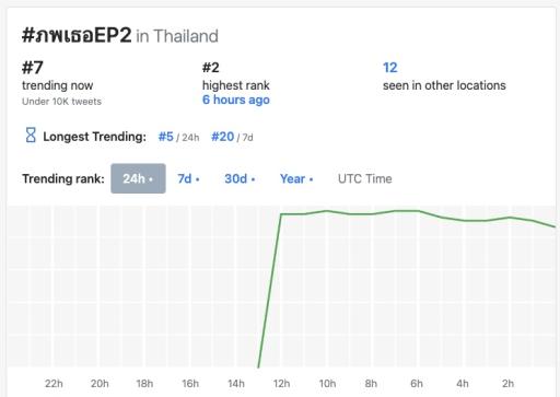 這集播出後在X平台的泰國流行趨勢(聲量)排行榜中場最高是第2名