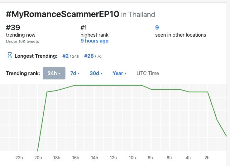 這集播出後在X平台的泰國流行趨勢(聲量)排行榜中場最高是第1名