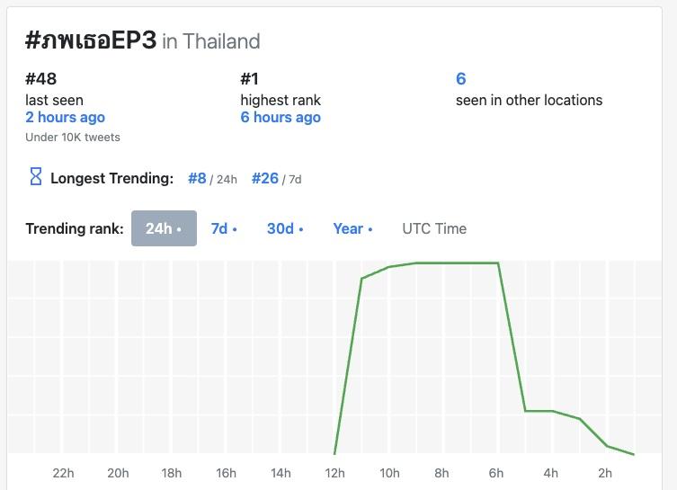這集播出後在X平台的泰國流行趨勢(聲量)排行榜中場最高是第1名