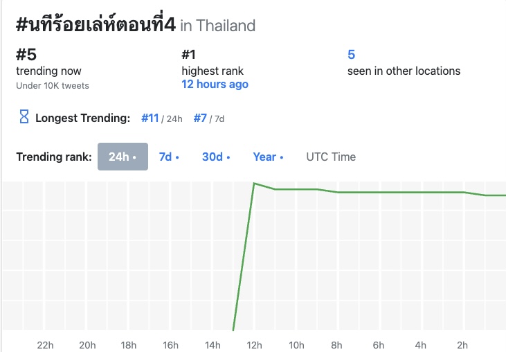 這集播出後在X平台的泰國流行趨勢(聲量)排行榜中場最高是第1名