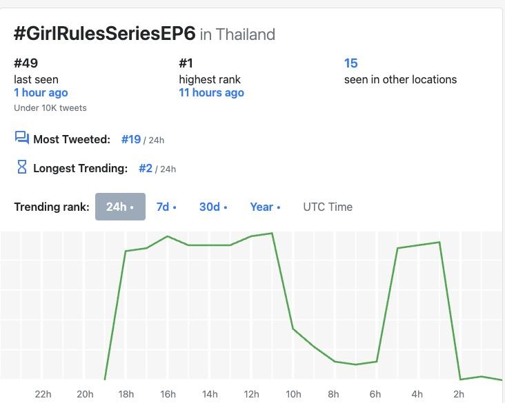 這集播出後在X平台的泰國流行趨勢(聲量)排行榜中場最高是第1名