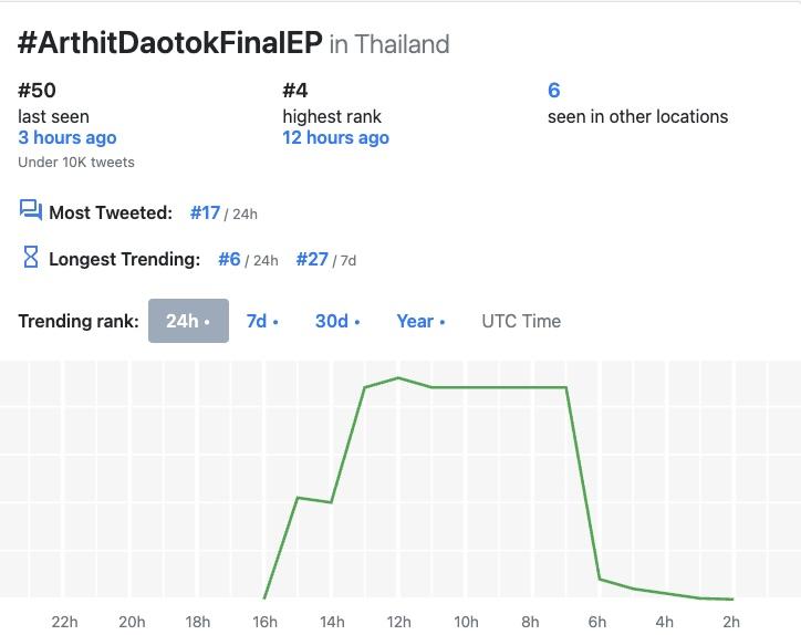 3.這集播出後在X平台的泰國流行趨勢(聲量)排行榜中場最高是第4名