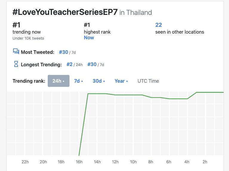 這集播出後在X平台的泰國流行趨勢(聲量)排行榜中場最高是第1名