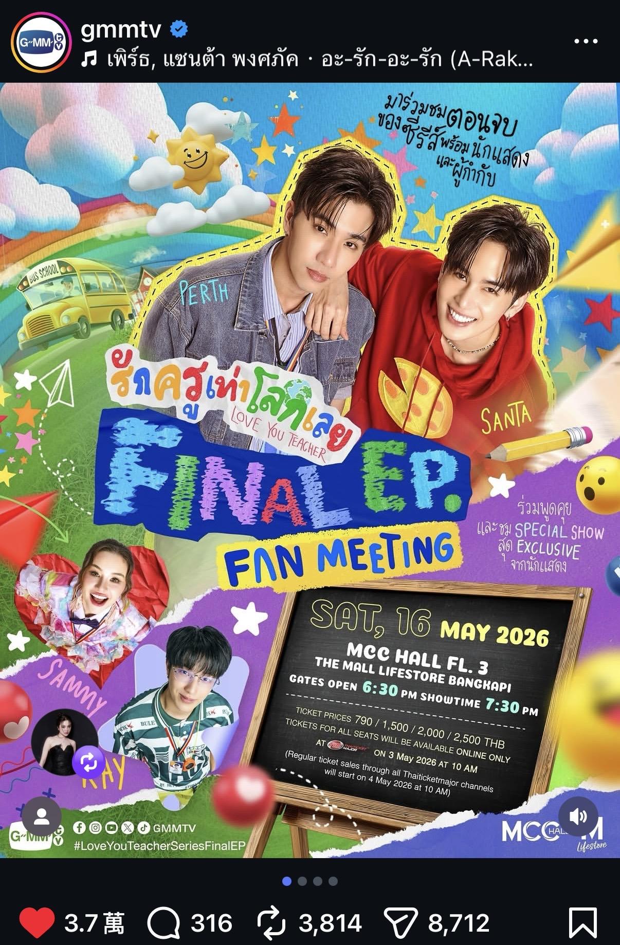 另外GMMTV也宣布了終映趴將在5/16舉行~