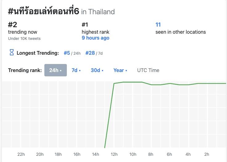 這集播出後在X平台的泰國流行趨勢(聲量)排行榜中場最高是第1名
