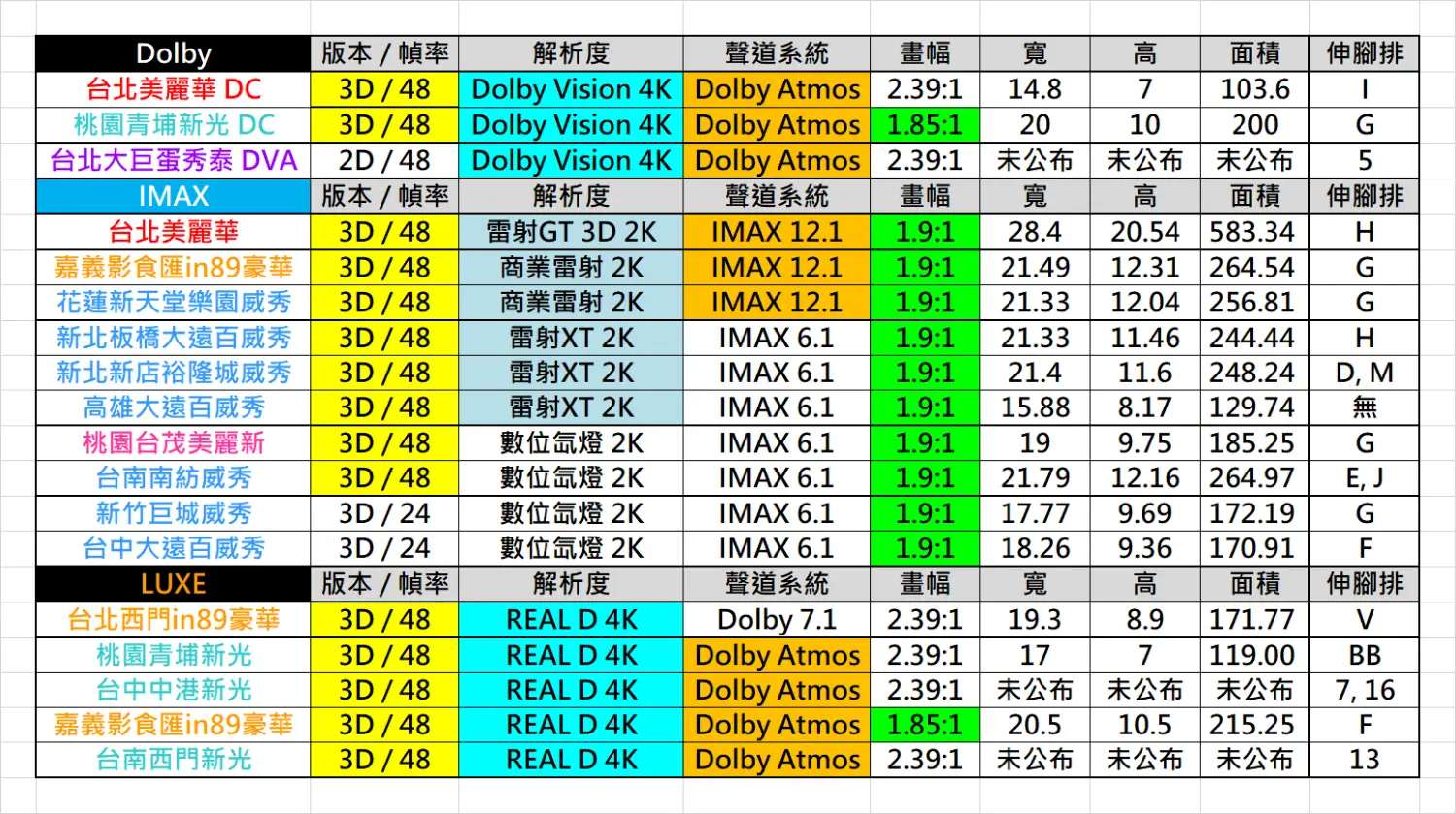 遠百IMAX,台南新光LUXE就相形失色。