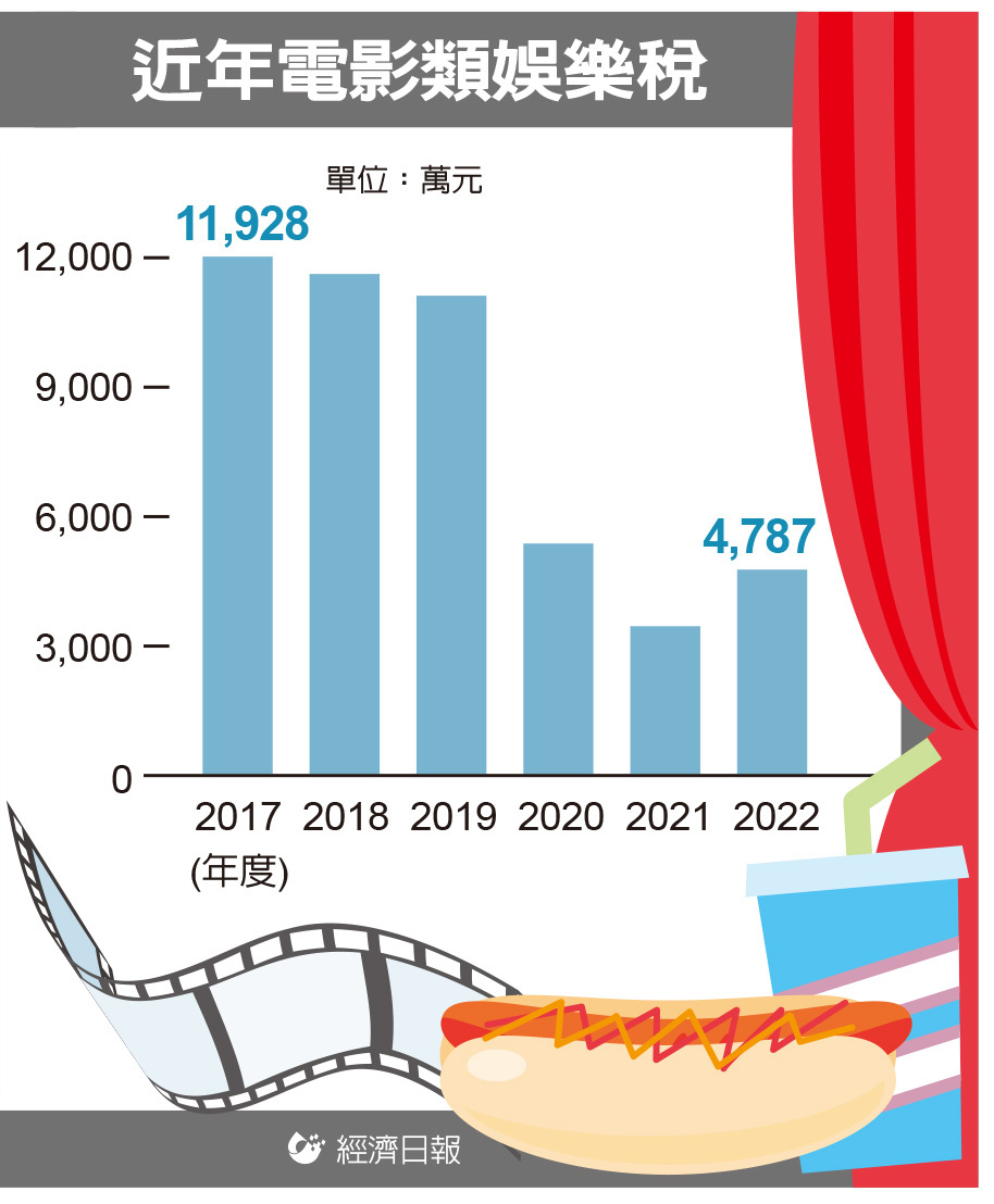 觀察近年電影類娛樂稅,在2019年前全年實徵淨額多在1億元以上,不過受到疫情干擾,