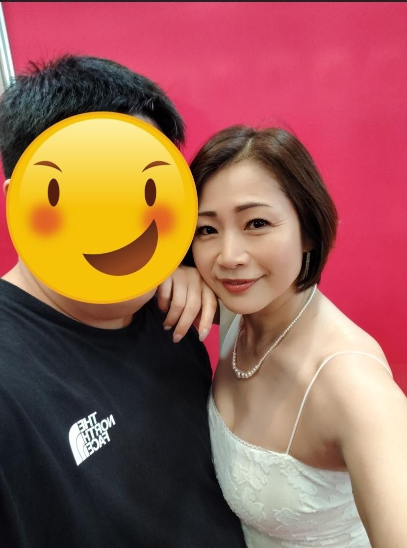 右邊:如果她不是穿那麼露的話,是真的挺像母子合照的XD