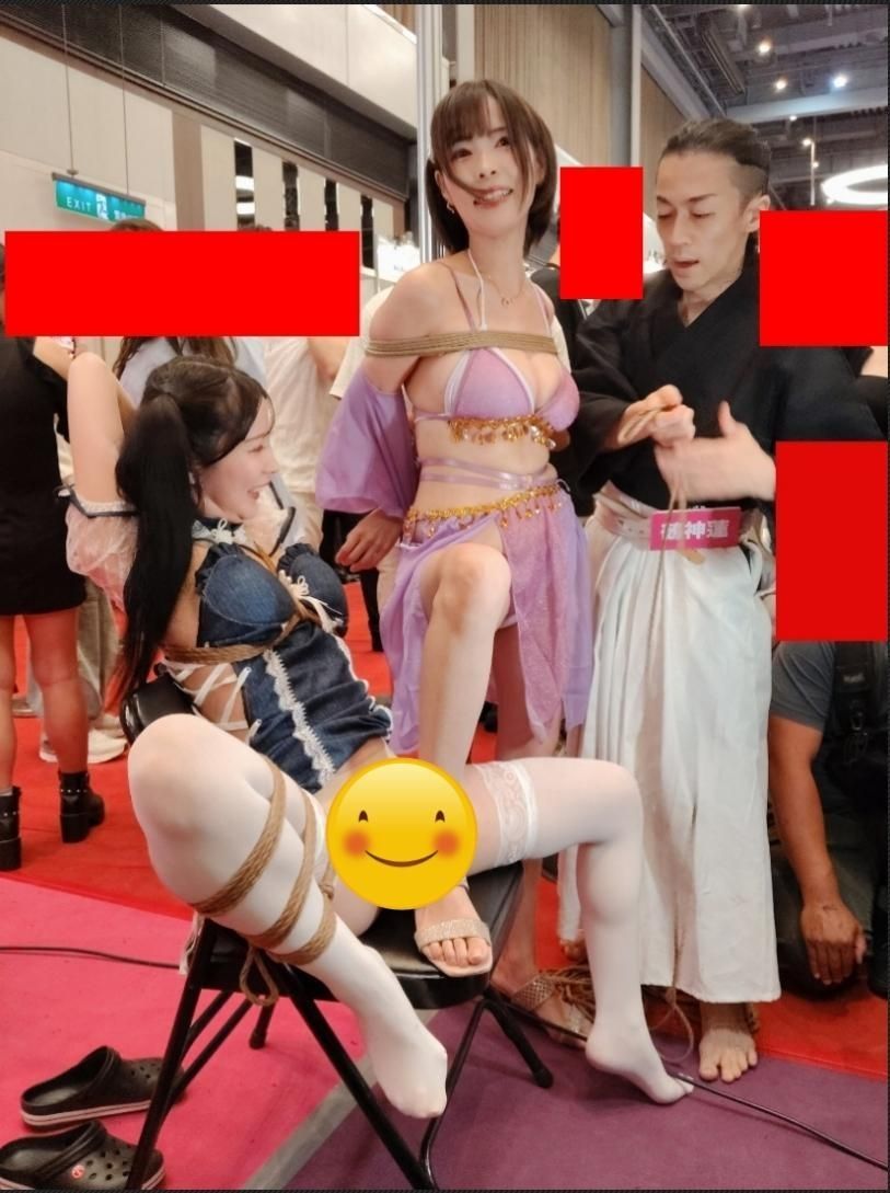 附近攤位的「最強屬性」也臨時在葵屋攤位表演將四位女優進行繩縛,其中我只知道真木