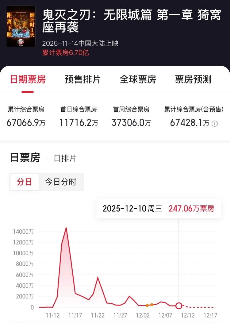 根據「貓眼電影」微博於11月5日的貼文,《鬼滅之刃無限