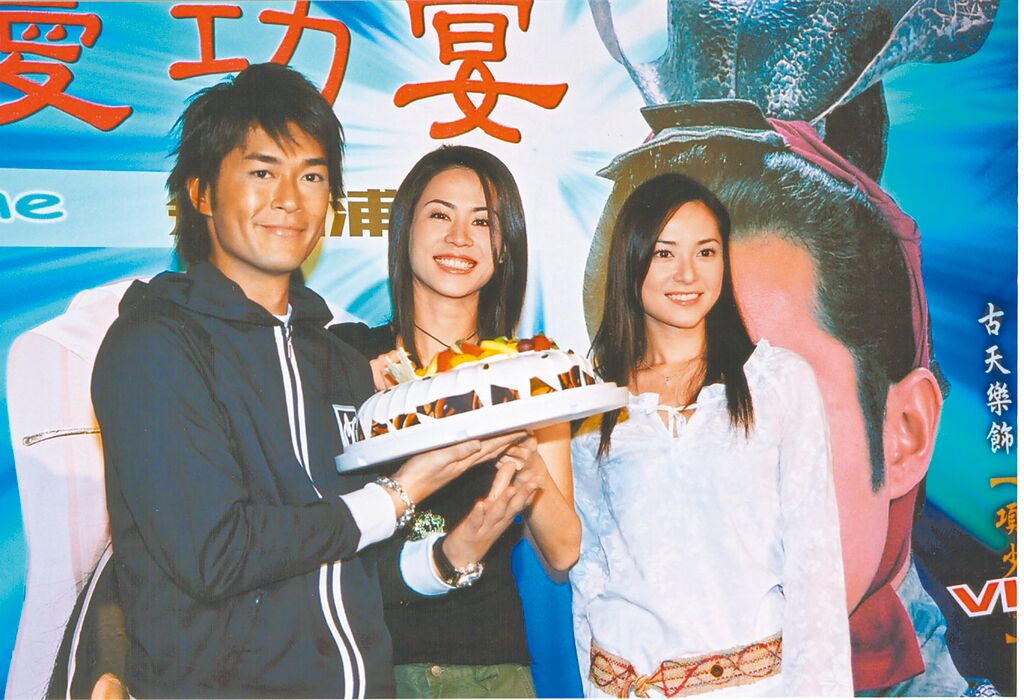 25年前古天樂(左起)、宣萱及郭羨妮曾來台宣傳港劇版《尋秦記》。(華映提供)